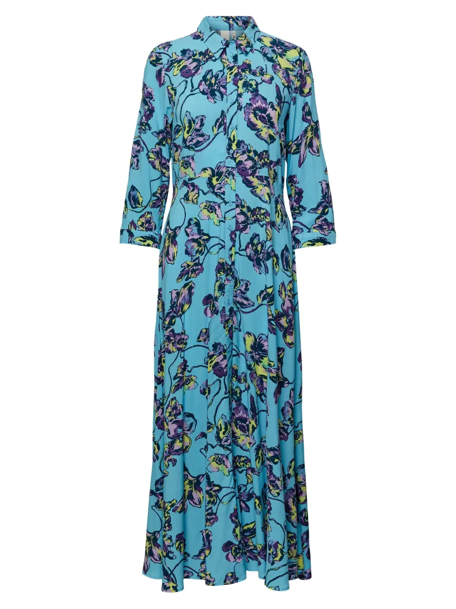 Y.A.S naisten maksimekko, jossa edessä napitus ylhäältä alas asti sekä klassinen kääntökaulus. Normaali istuvuus ja kevyt kangas tekevät mekosta tyylikkään valinnan moniin eri tilaisuuksiin. Kokoa valitessa, otathan huomioon kutistumisvaran. Kutistuu 5-10%.