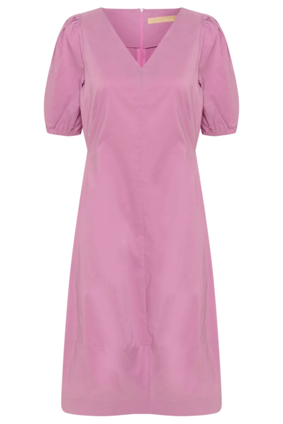 Culturen kauniissa mekossa on miellyttävä joustava materiaali. .Mekossa lyhyet puhvihihat, vetoketjukiinnitys selässä sekä taskut. Hieman levenevä helma joka laskeutuu kauniisti. Kaunis v- pääntie. Sopii sekä arkisempaan kuin juhlavampaankin käyttöön.