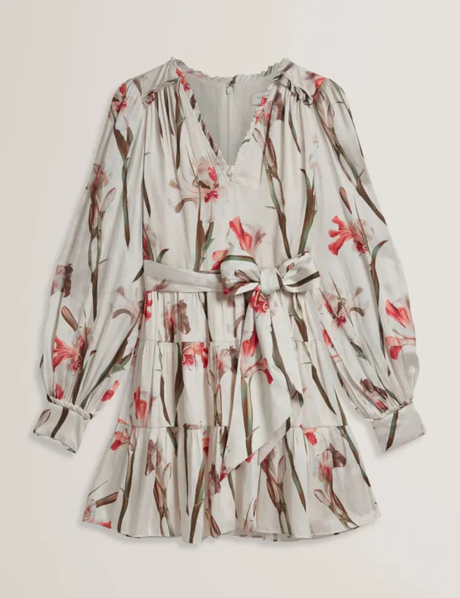 Käsinpesu, ei kemiallista pesua”>Kaunis a-linjainen helma, v-pääntie ja rennot puhvihihat lisäävät käyttömukavuutta kauniisen juhlamekkoon. Kevyt polyesterisatiini on pehmeä ja kevyt ihoa vasten.