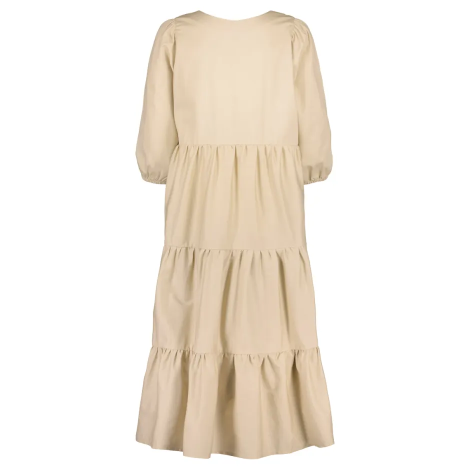 Kotimaisen Sinnuun LUX-mekko on upea valinta niin arkeen kuin juhlaan. Mekossa on näyttävä, leveä frillahelma ja kauniisti pussittavat 3/4-mittaiset hihat, joiden hihansuissa joustavat kuminauhat. Mekon v-pääntie keventää kokonaisuutta ja saa sen istumaan käyttäjälleen kauniisti. Tämän puuvillaisen maximekon materiaali on ryhdikästä ja sen pinnassa on kaunis, himmeä kiilto. Pieni määrä elastaania lisää mekon käyttömukavuutta ja tekee siitä miellyttävän tuntuisen päällä. Käytännöllisyyden ja mukavuuden viimeistelevät mekossa olevat taskut.
