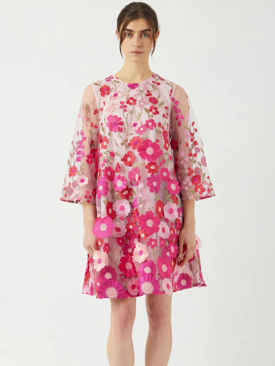 Juhlakauden ehdoton katseenvangitsija! Kauniissa mekossa korostuvat moniväriset kukat ja mukavuutta lisää A-linjainen leikkaus. Mekossa on piilovetoketju kiinnitys keskellä takana.