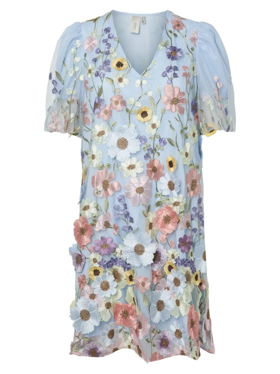 Valmistaudu juhlakauteen tällä upealla mekolla! Upeita kukkayksityiskohtia, pitkät hihat ja u-kaula-aukko.