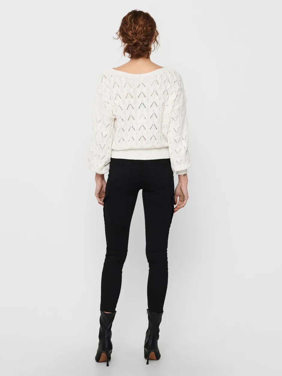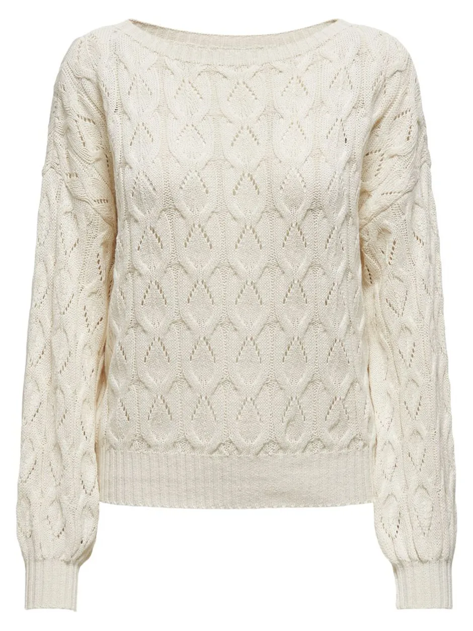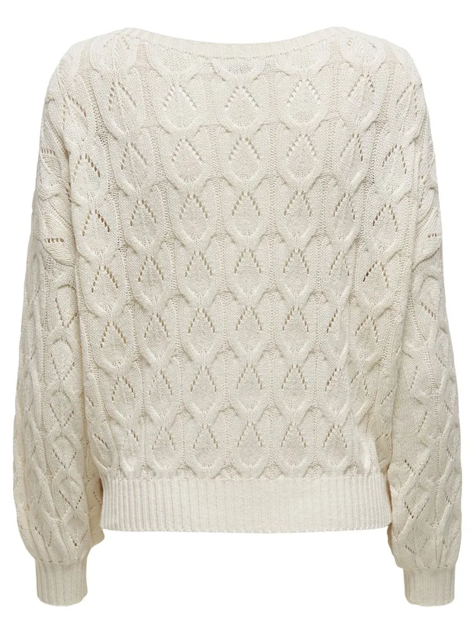 Onlyn puuvillainen neulepaita, jossa on kaunis kuvioitu pinta. Avara pääntie ja joustavat ribbneulotut resorit hihansuissa ja helmassa.