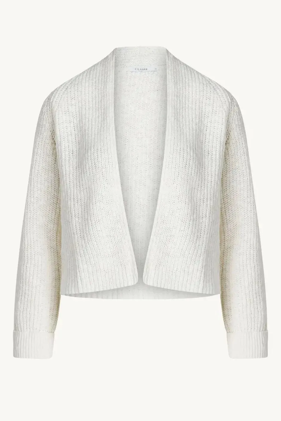 Neuletakki pehmeää puuvillaa, jossa resorireunus ja taitetut hihat.