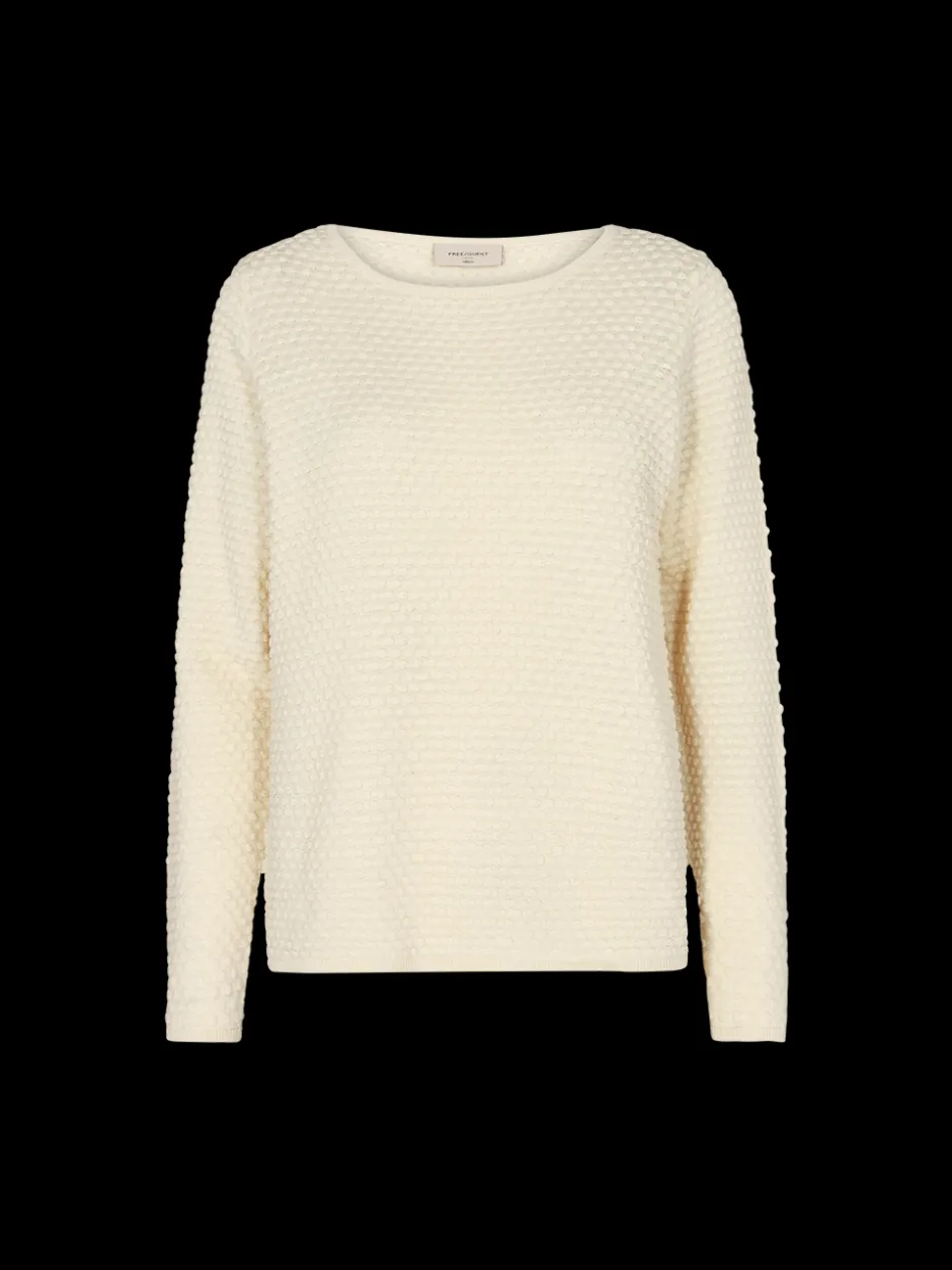 Naisten pitkähihainen neulepusero, pyöreä pääntie. Materiaali ekologista puuvillaa..