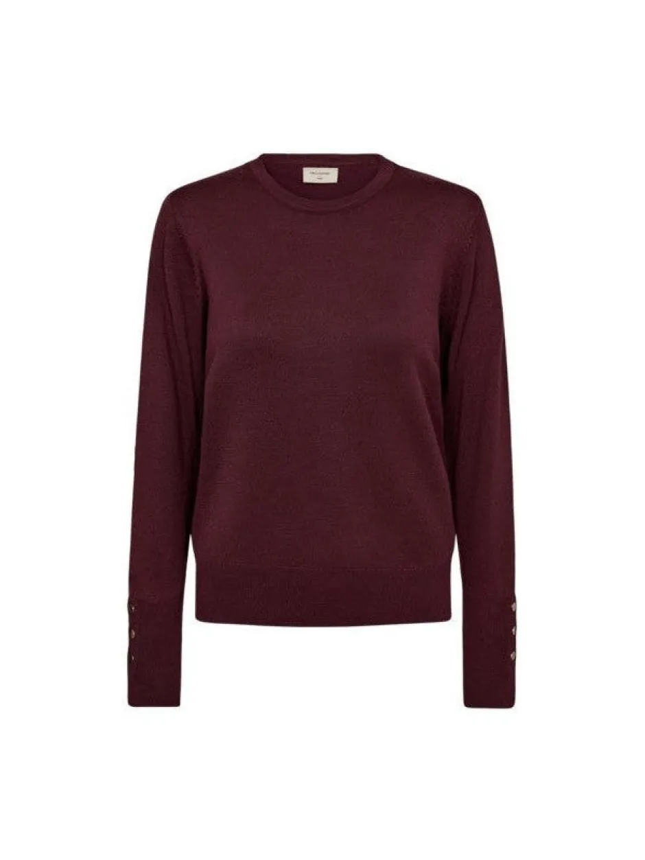 Neulepusero pehmeästä, hienoksi neulotusta materiaalista. Neulepuserossa on yksinkertainen siluetti rennolla istuvuudella, pyöreä kaula-aukko, resorit sekä pitkät hihat koristelluilla napilla..