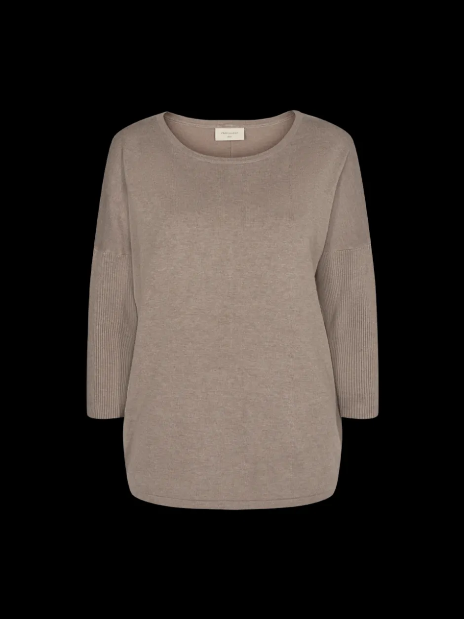 Freequentin yksivärinen neulepusero vajaamittaisilla ribneuloshihoilla. O-pääntie, malliltaan kapenee helmaan. Koossa S pituus n.65 cm.