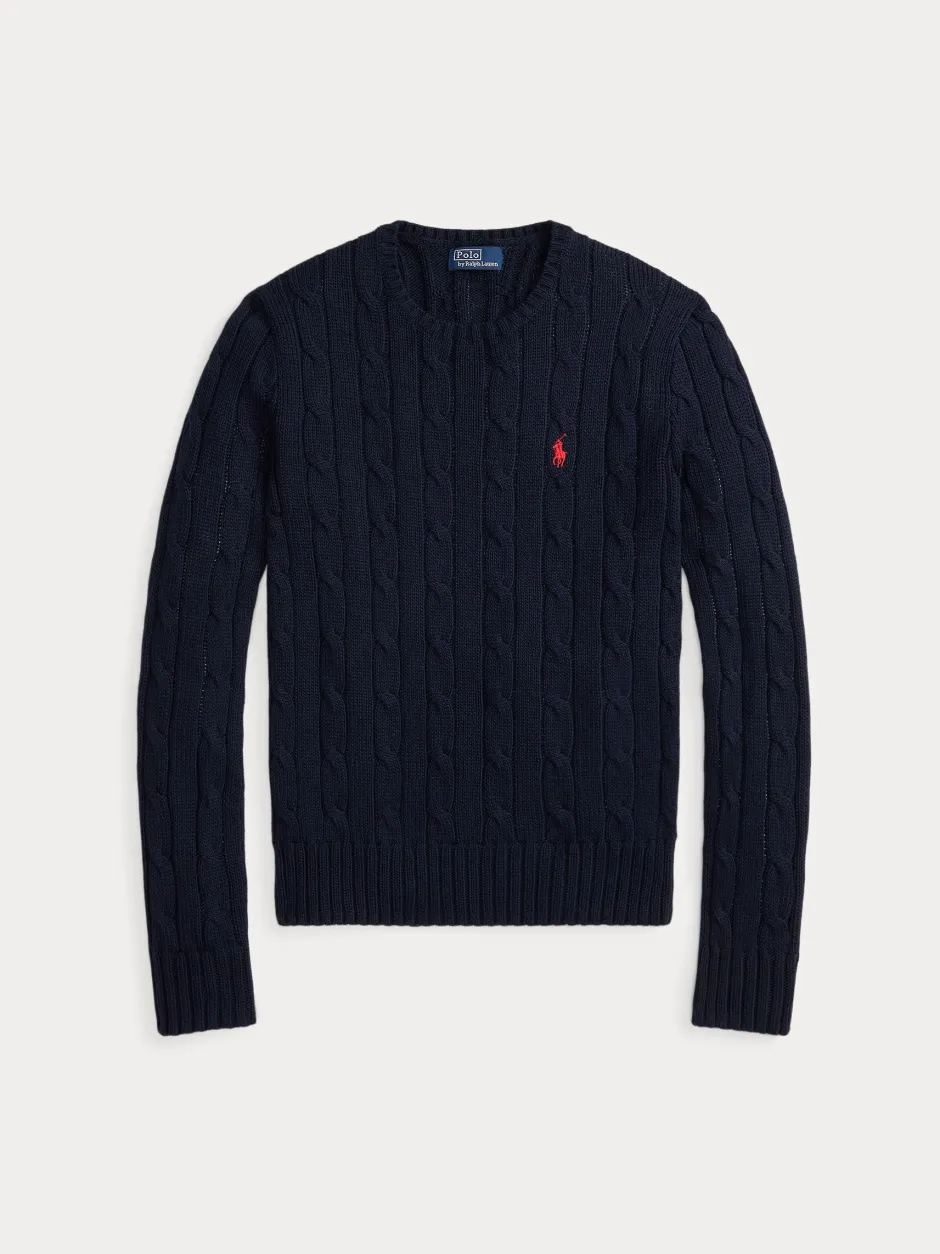 Tämä vartalonmyötäinen, pyöreäkauluksinen neulepusero on Poolo-vaatteiden ehdoton ominaisuus. Se on valmistettu pehmeästä, kammatusta puuvillasta ja siinä näkyy tavaramerkiksi muodostunut palmikkoneule.
