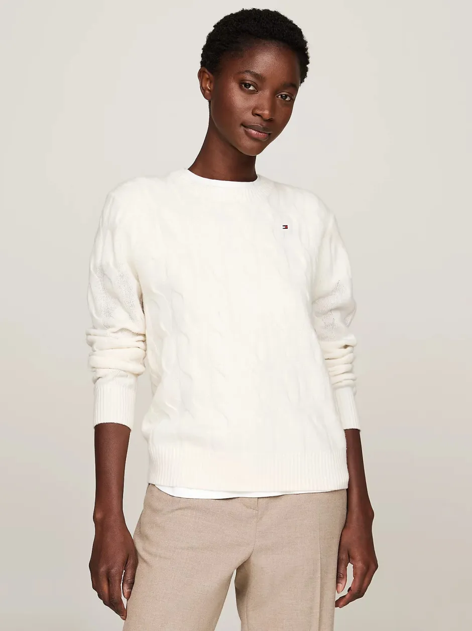 Tommy Hilfiger ihana 100% villainen neule. Pehmeä materiaali ja klassinen palmikkoneulos regular fit istuvuudella. Joustinneulotut kaulus, hihansuut ja helma.