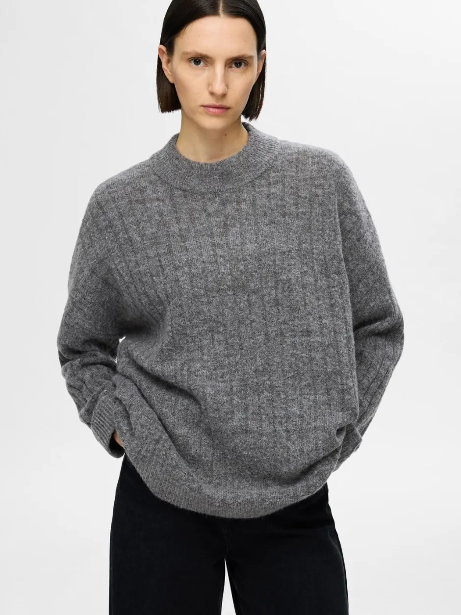 Tuotetyyppi: Neulottu villapaita KAULA: Korkea kaula Hiha: Pitkät hihat Hihat: Lasketut olkapäät Hihansuut: Resorit hihansuissa Istuvuus: Loose Fit