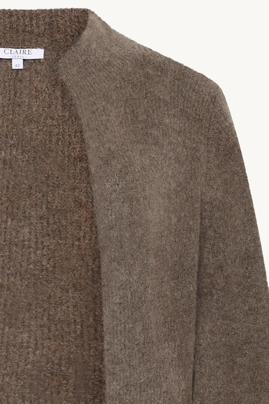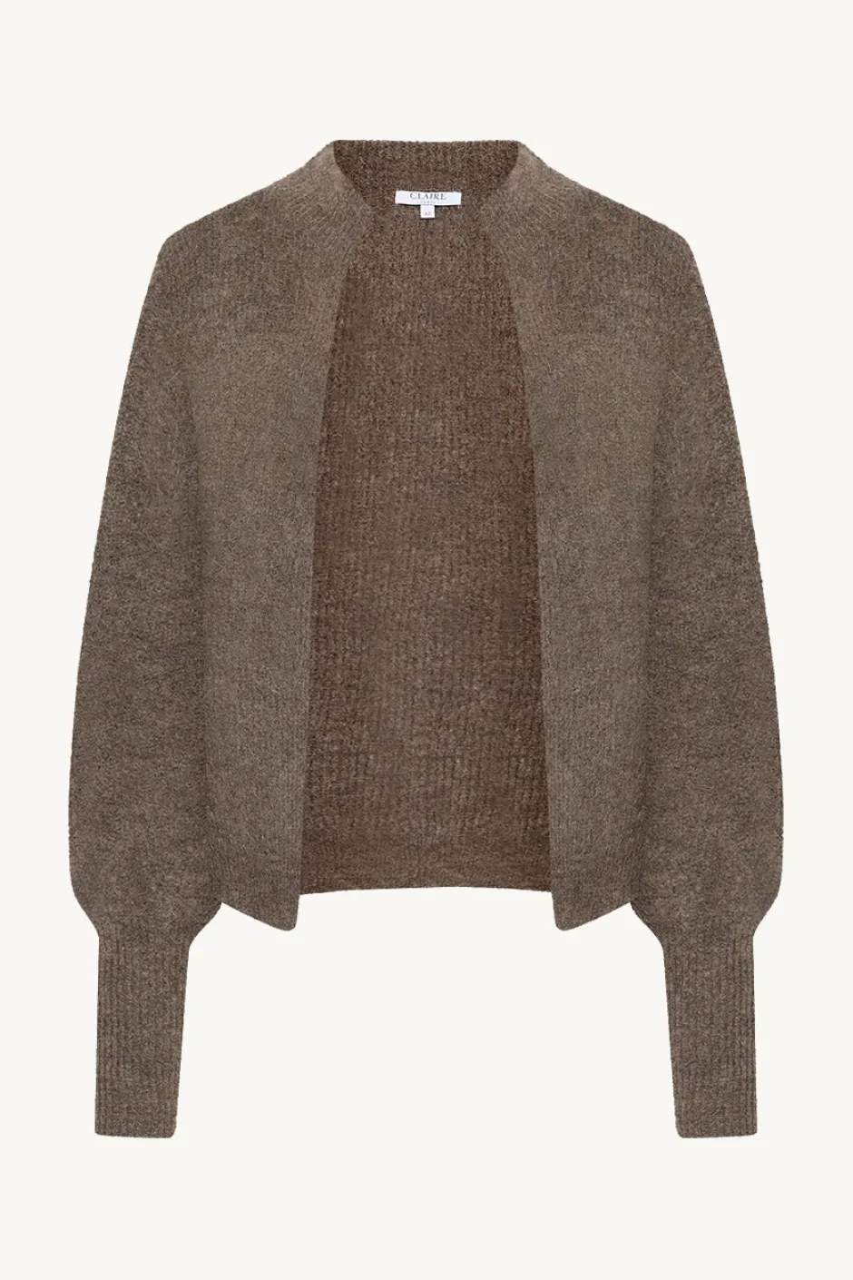 Naisten jakkumainen neuletakki pehmeää, joustavaa mohairia. Lyhyt, vyötärölle ulottuva malli, pallohihat, pitkät resorit hihansuissa.