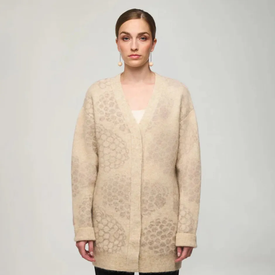 Paksu ja lämmin Ellis-neuletakki on viileämpien päivien luottovaate. Ellis on klassikko jo syntyessään, kuten sen kuosiin jakardikudottu ikoninen Pässikin, jonka Kaija Aarikka suunnitteli suomalaisen sisun symboliksi. Rento ja pehmeä Ellis-villatakki on istuvuudeltaan väljä, ja siinä on tyylikäs kuuden napin piilonapitus. Se sopii käytettäväksi myös takkina alkusyksyn päivinä.