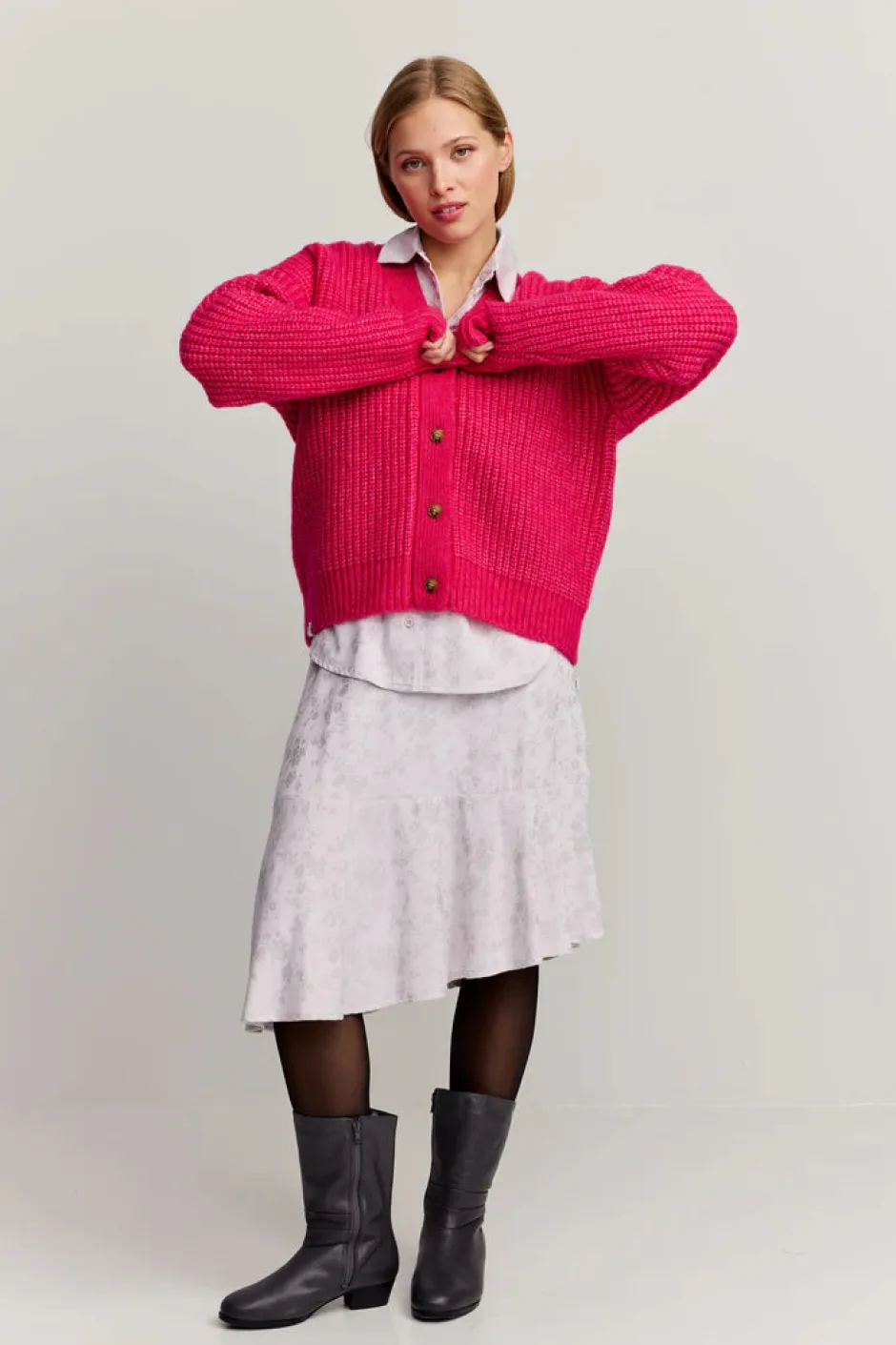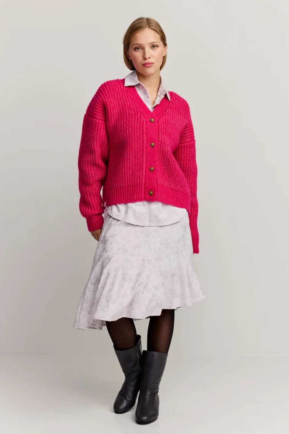 Makia Florence Cardigan on yhdistelmä ajatonta skandinaavista muotoilua ja laadukkaita materiaaleja. Valmistettu 68 % villasta, 27 % nylonista ja 5 % elastaanista, mikä tekee neuleesta pehmeän, joustavan ja lämpimän. Napillinen malli ja rennon klassinen leikkaus tekevät siitä helposti yhdisteltävän sekä arkeen että rentoihin vapaa-ajan asuihin.