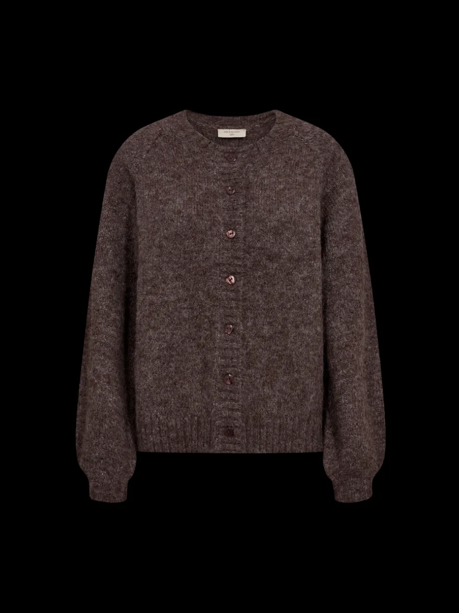 Freequent-neuletakki pehmeästä neulotusta materiaalista. Yksinkertainen neuletakki, jossa on pitkät pallohihat, resori, väljä istuvuus ja sydämenmuotoiset napit edessä.