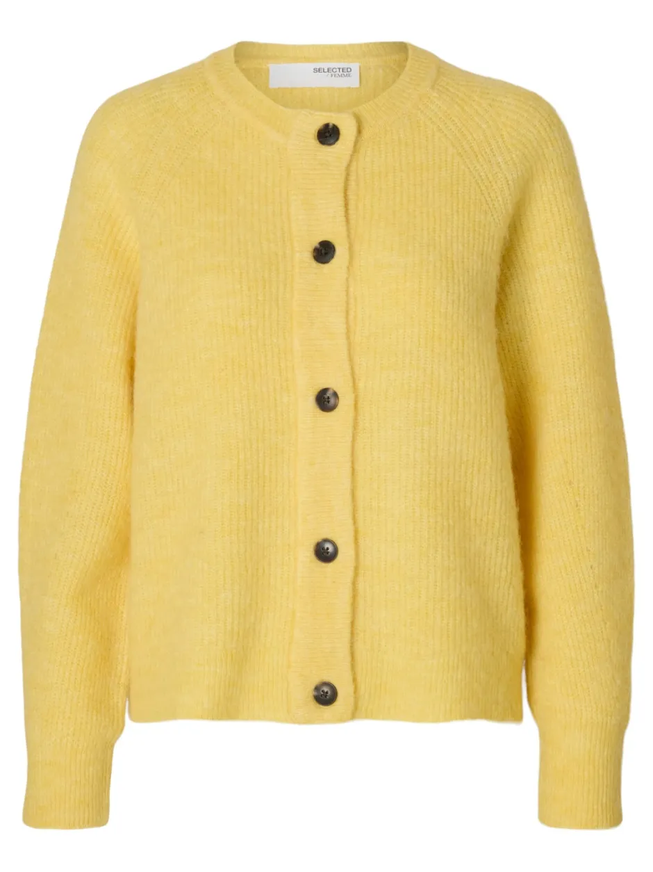 Selected Femmen ihastuttava neuletakki, joka on valmistettu pehmeästä ja laadukkaasta villasekoitteesta. Neulottu pinta, .pyöreä pääntie ja näyttävät napit edessä.