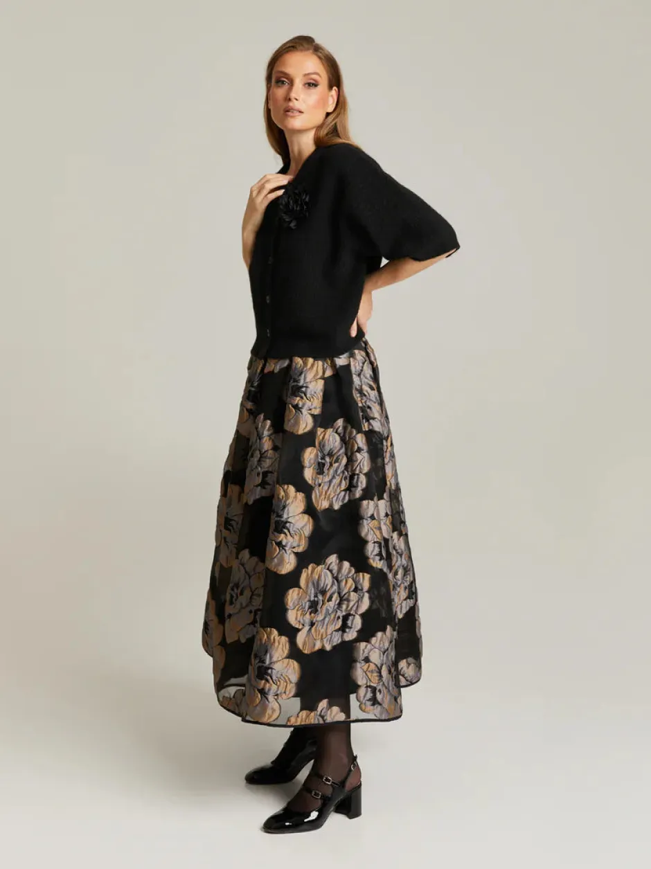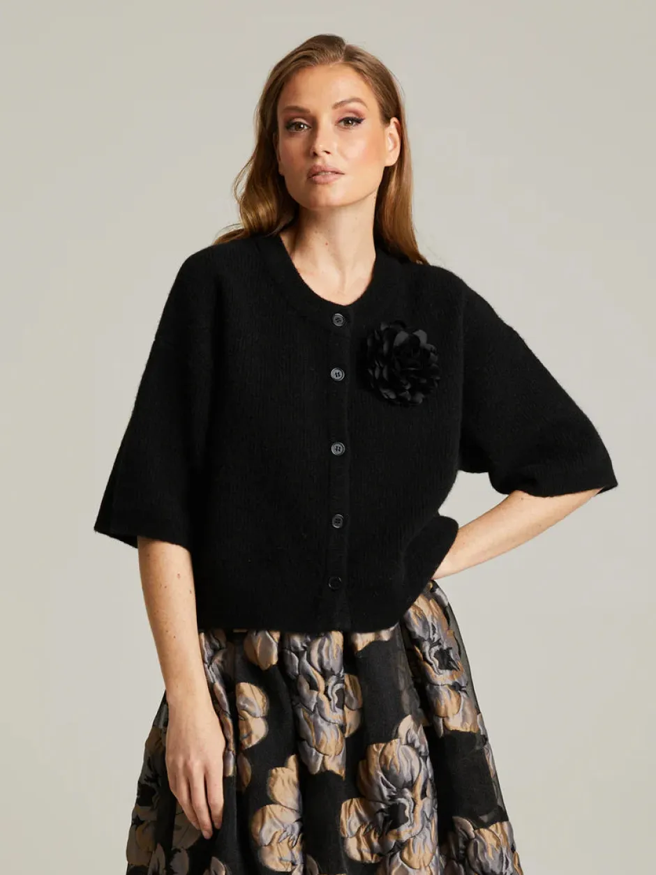 Neuletakki lyhyillä hihoilla mukavasta ja pehmeästä alpakka-merinovillasekoituksesta. Lyhyt malli ja nappikiinnitys edessä.