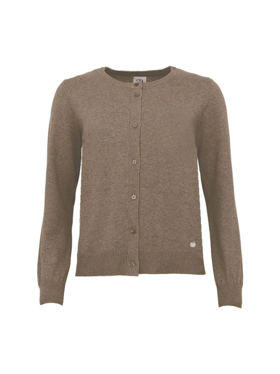 STI:n lyhyt neuletakki nappikiinnityksellä ja leveillä resoreilla on monikäyttöinen ja helposti yhdisteltävissä sekä työ- että vapaa-ajan asuihin.