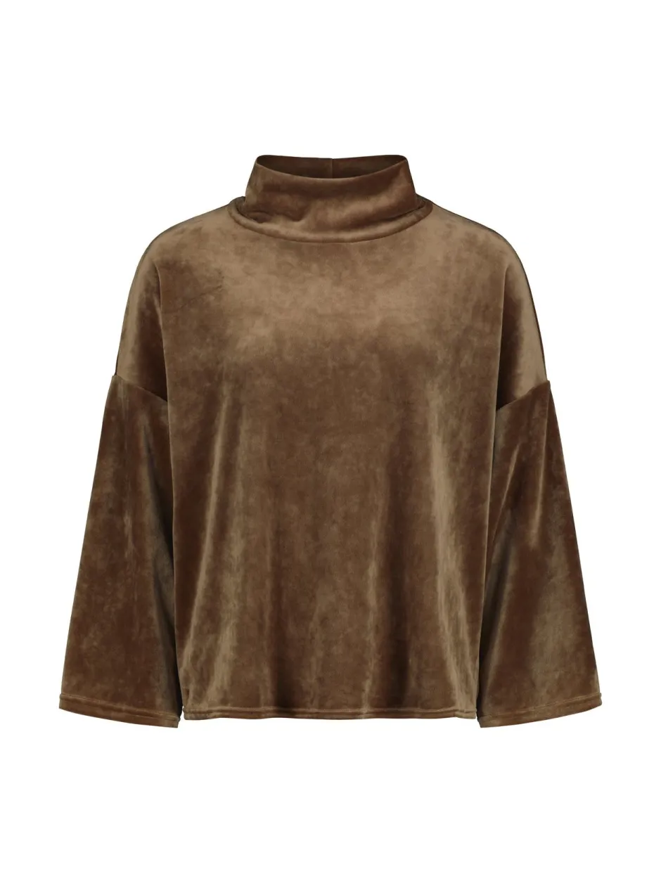 Sinnuun naisten samettipintainen pusero tuo pehmeää ja ylellistä tuntua arkeen. Samettipaidan suora ja väljästi istuva malli, sekä pehmeä pinta tekevät paidasta miellyttävän pitää. Paidassa on väljä, korkea kaulus, leveät hihat sekä laskettu olkasauma, joka korostaa paidan rentoa ja huoletonta tyyliä. Tyylikäs sävy on helppo yhdistää eri asuihin ja yksinkertainen malli yhdistyy helposti niin kotiasuihin kuin rentoihin menoihin.