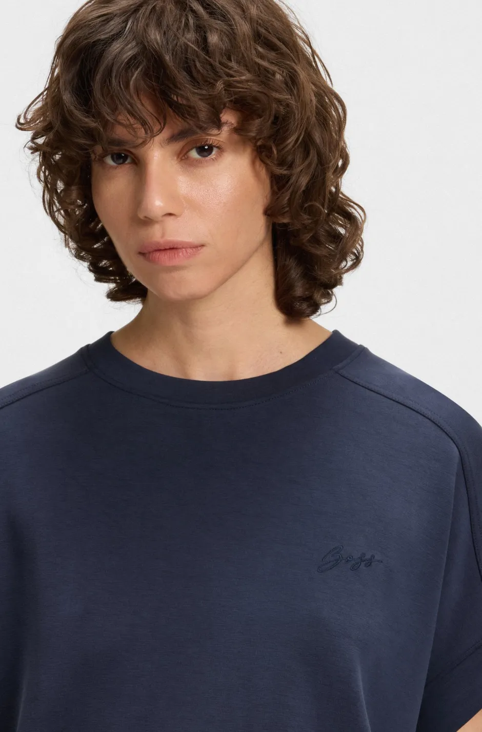 Takana poikkilaskos ja lasketut olkapäät, tämä regular fit t-paita on vaivattoman rento. Käsinkirjoitettu BOSS-logokirjailu rinnassa.