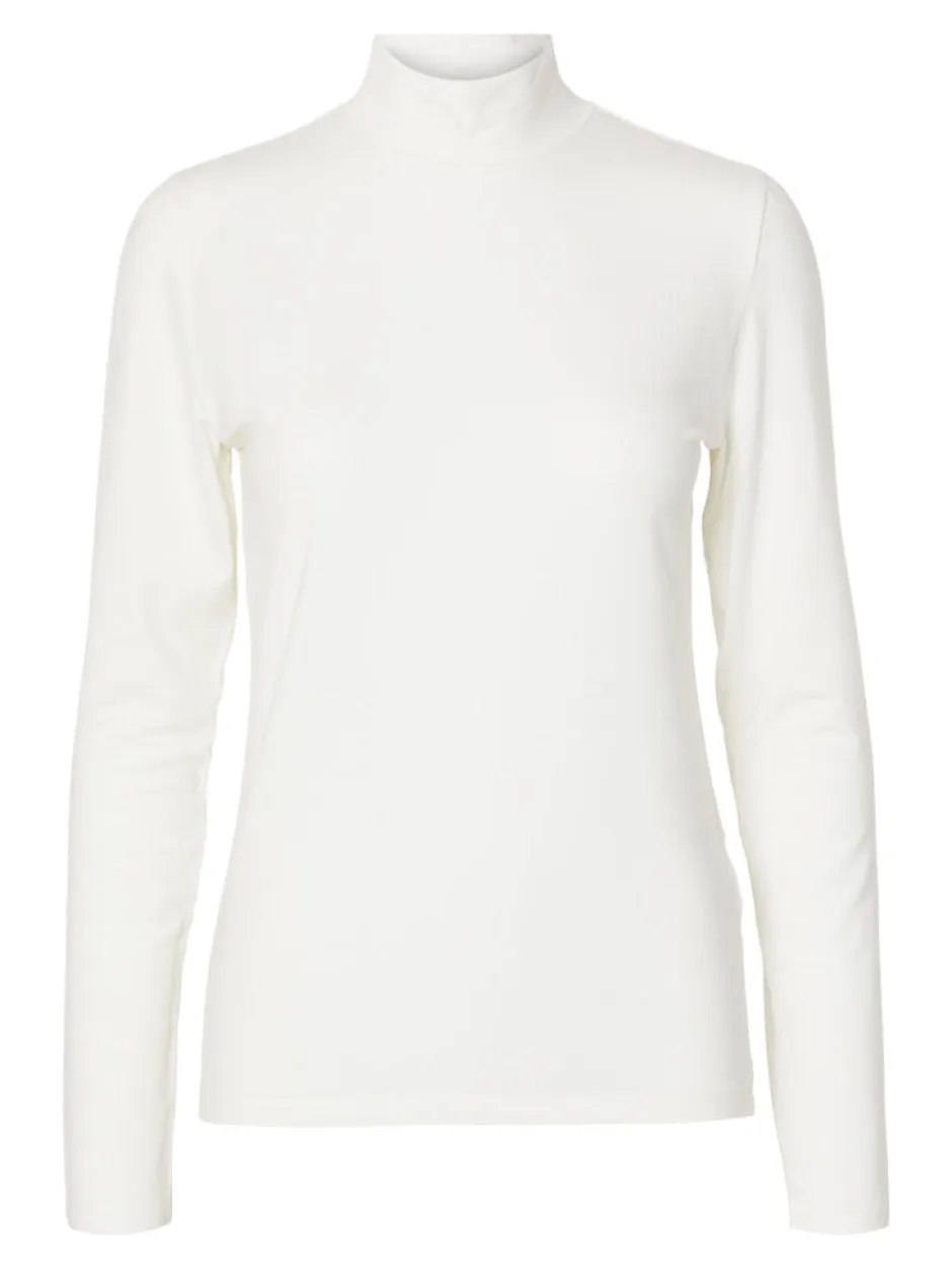 Selected Femmen korkeakauluksinen pitkähihainen paita. Valmistettu mukavasta ja joustavasta materiaalista, mikä tekee siitä erittäin helpon pukea. Yhdistä se korkeavyötäröisiin farkkuihin ja ruudulliseen bleiseriin. – Slim fit – Korkea kaulus – Joustava