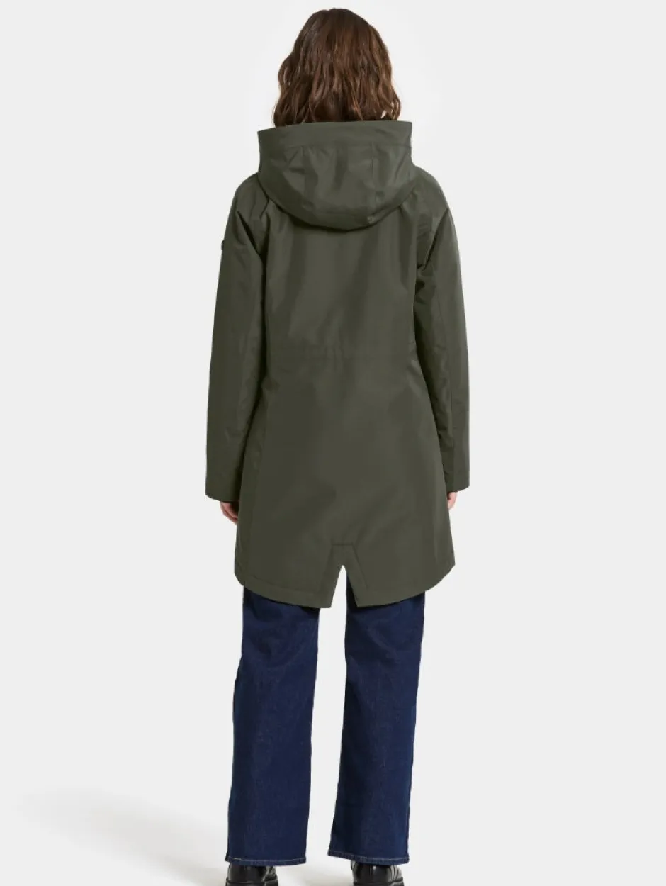 Alana on tyylikäs parka, jossa on vanutäyte, täydellinen sekä jokapäiväiseen käyttöön että ulkoiluun. Se on vesi- ja tuulenpitävä teipatuilla saumoilla ja valmistettu hengittävästä materiaalista, mikä tekee siitä ihanteellisen kaikissa sääolosuhteissa. Parkassa on kaksisuuntainen vetoketju edessä ja säädettävä huppu lisäsuojaa varten. Vyötäröä voi säätää sisäpuolella olevalla kiristysnauhalla henkilökohtaisen istuvuuden saavuttamiseksi. Sivutaskut sulkeutuvat napeilla ja hihansuissa on joustavat reunat lisämukavuutta varten. Vetoketju ei koskaan ole suoraan leukaa vasten kauluksen suunnittelun ansiosta.