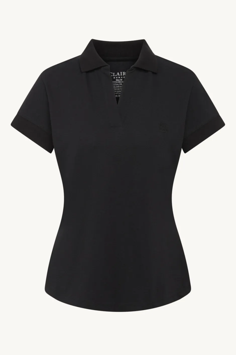 Clairen lyhythihainen pikeepaita v-kauluksella. Clairen logo brodeerattuna rintaan.