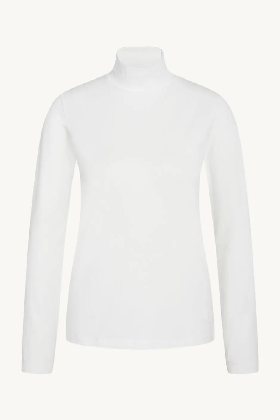 Tyylikäs pitkähihainen t-paita joustavaa puuvillaa, korkea pääntie.
