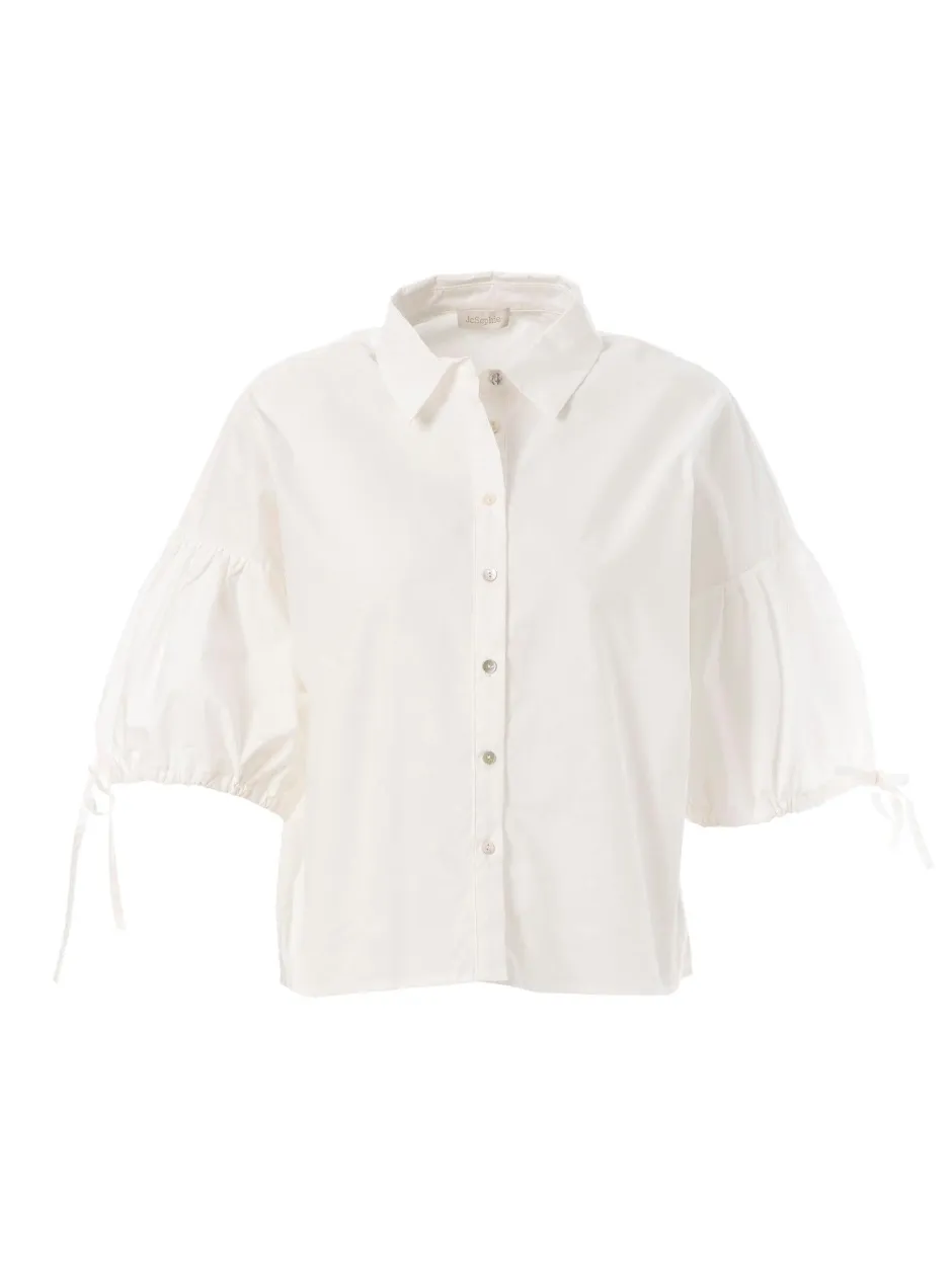Lyhythihainen paitapusero rennolla istuvuudella. Hihansuut säädettävällä nyörikiinnityksellä ja edessä on nappikiinnitys. Kangas on kevyttä puuvillapopliinia.