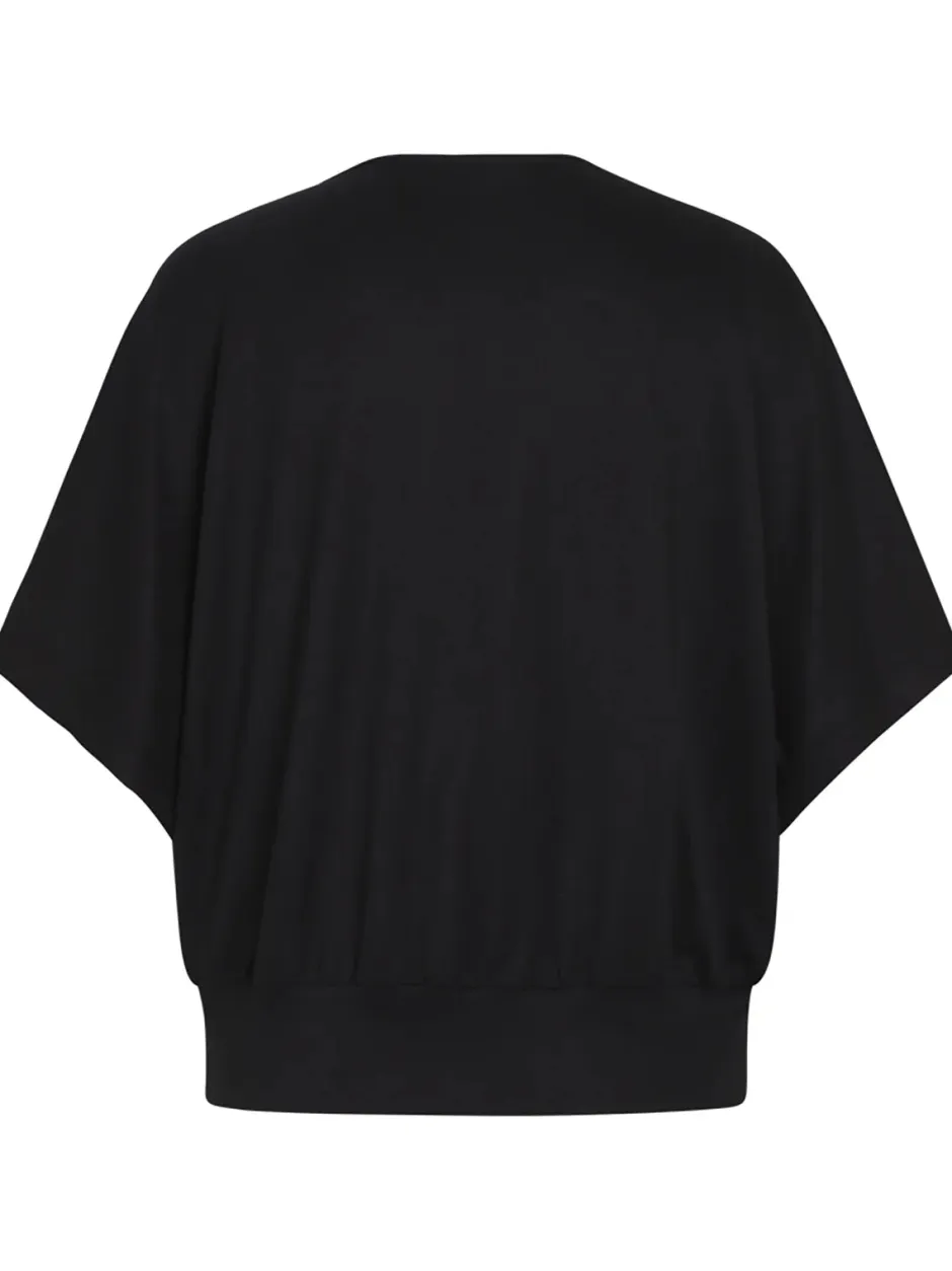 Tässä väljässä puserossa on imarteleva V-pääntie ja lyhyet hihat, joissa on halkiot, joita koristaa kaksi kullanväristä nepparia. Tämä musta pusero huokuu ajatonta eleganssia ja sopii sekä muodollisiin tilaisuuksiin että arkipäiviin.
