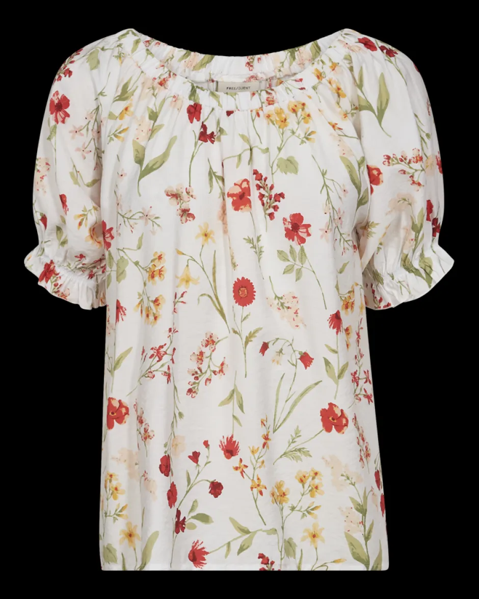 Freequentin FQMELE-pusero on kevyt ja ilmava valinta, joka tuo asuusi raikkaan kukkakuosin. Puserossa on lyhyet, röyhelöillä koristellut balloon-hihat sekä joustava, pyöreä pääntie, jotka korostavat sen rentoa istuvuutta. Valmistettu pehmeästä LENZING™ ECOVERO™ -viskoosin ja polyamidin sekoitteesta, tämä pusero tarjoaa sekä mukavuutta että tyylikkyyttä asuusi.