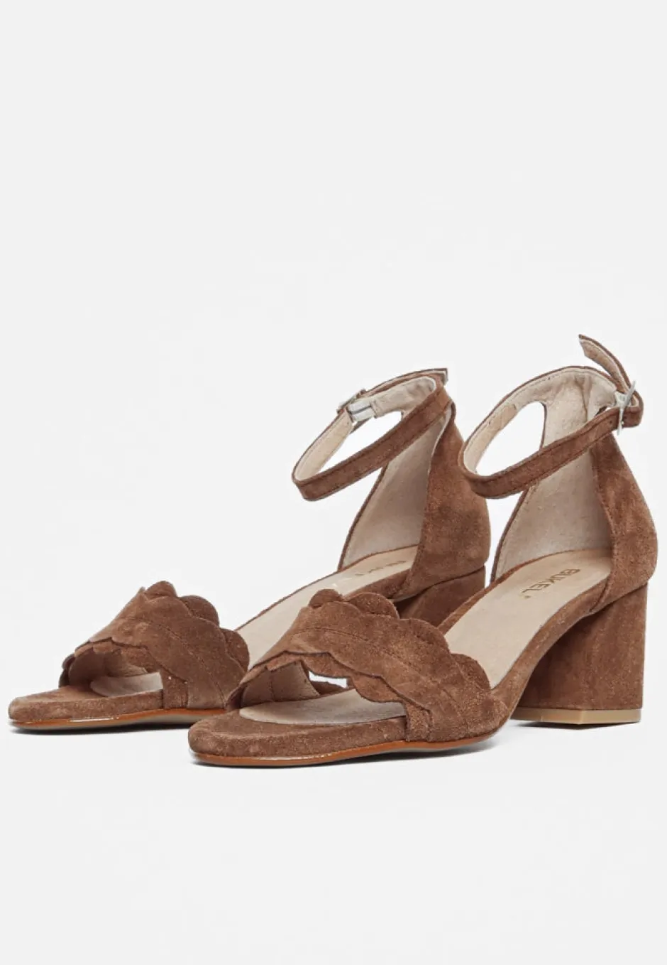Naisten tyylikkäät mokkanahkaiset korkosandaalit ovat monikäyttöiset ja helposti yhdisteltävissä erilaisiin asukoikonaisuuksiin. Säädettävä nilkkaremmi. Korko n. 6cm