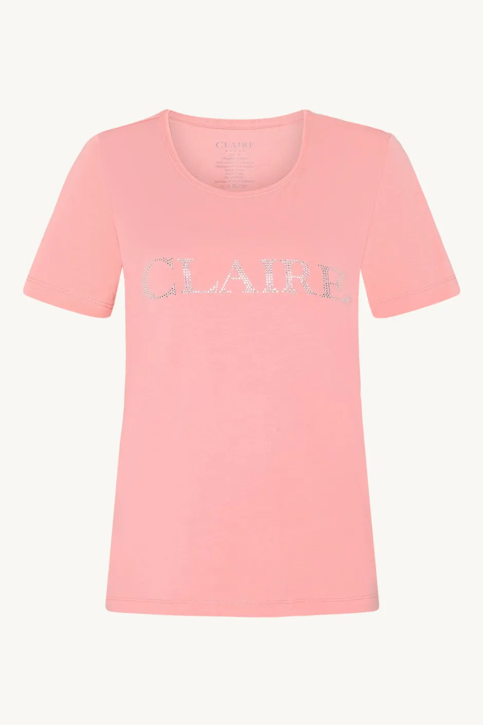 Naisten lyhythihainen t-paita pehmeää, joustavaa trikoota, rinnassa strasseilla tehty Claire-logo