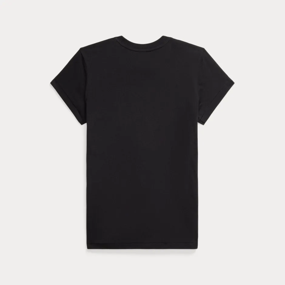 Suoraan leikattu puuvillajersey-paidaton pyöreä pääntie on pesty pehmeyden lisäämiseksi ja viimeistelty tavaramerkiksi muodostuneella poni-brodeerauksellamme.