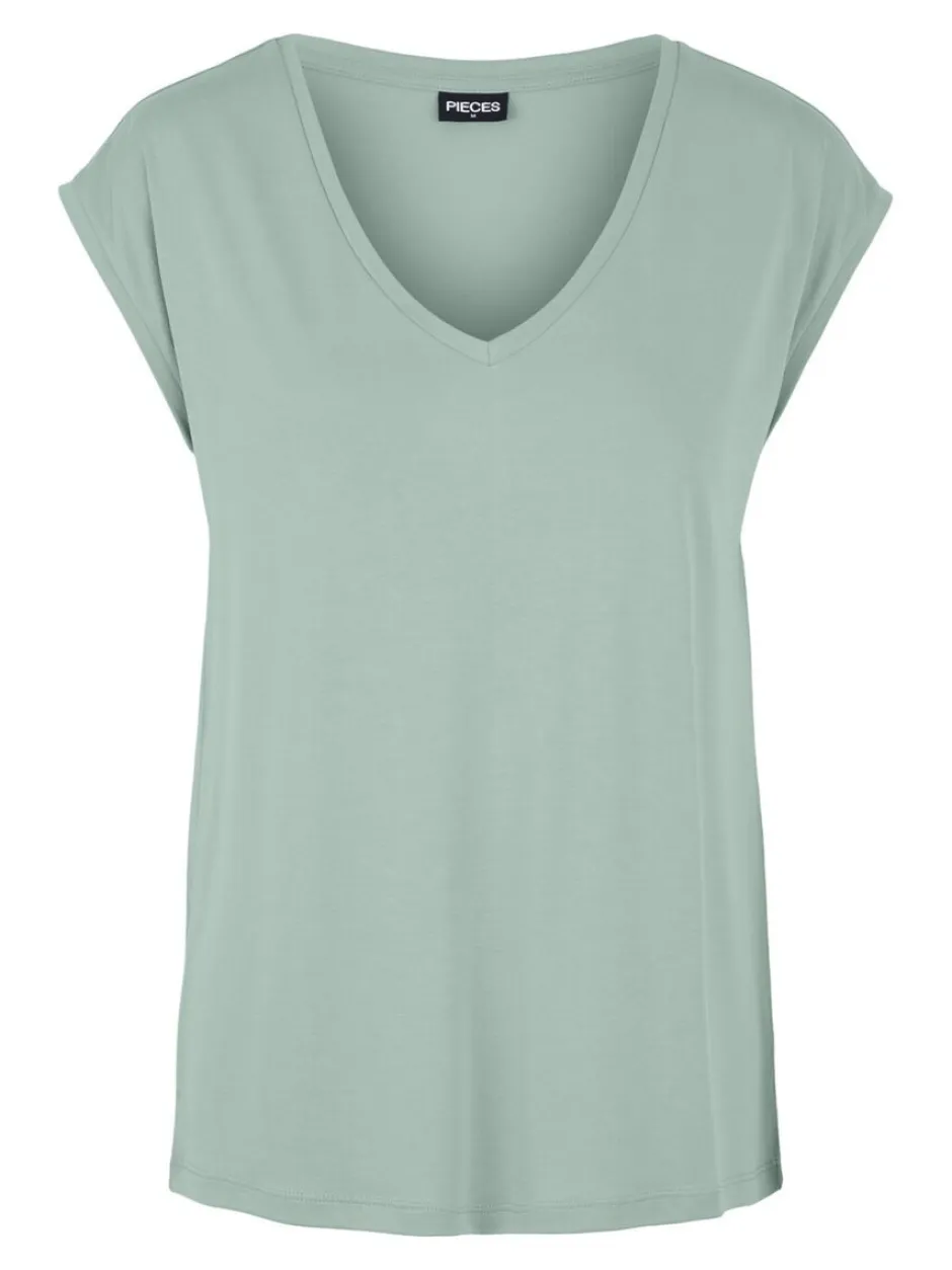 Pieces T-paidassa on joustava ja miellyttävä laatu. Pääntienä kaunis V. Suora istuvuus..