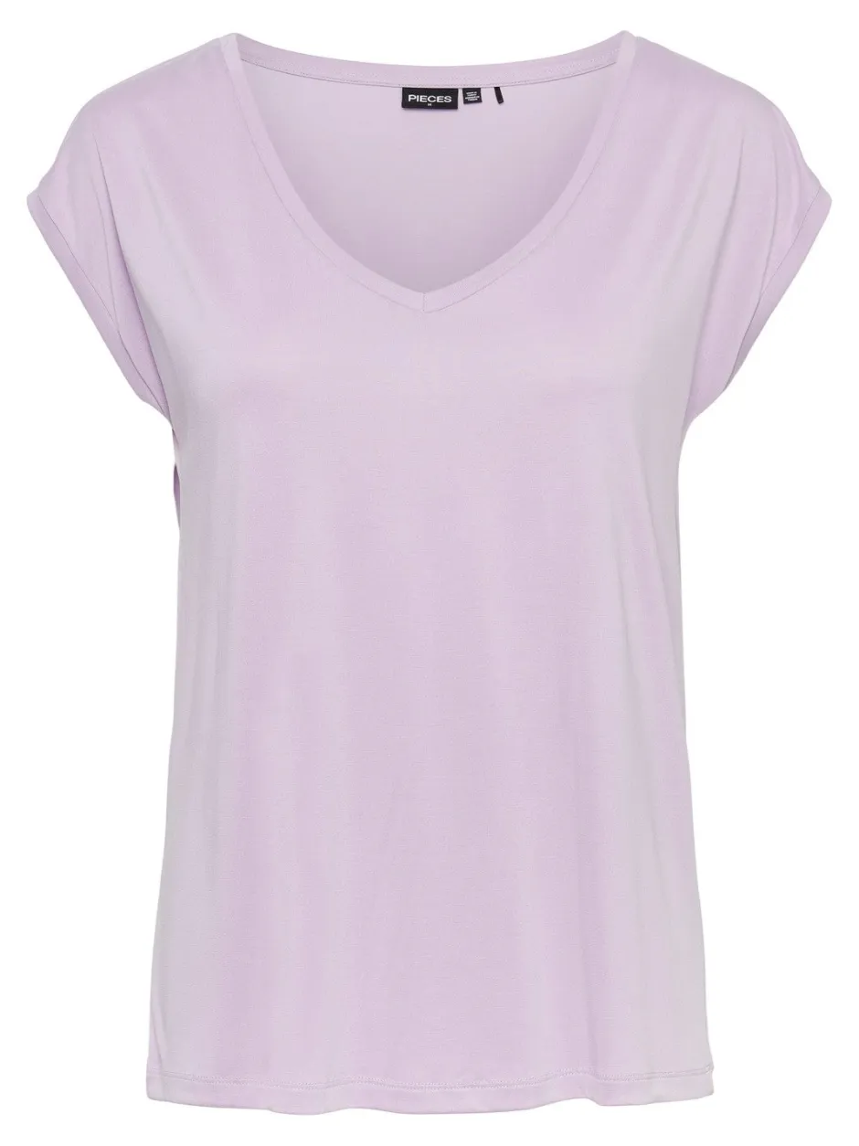 Pieces T-paidassa on joustava ja miellyttävä laatu. Pääntienä kaunis V. Suora istuvuus.