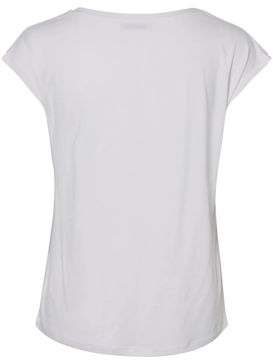 Pieces T-paidassa on joustava ja miellyttävä laatu. Pääntienä kaunis V. Suora istuvuus..