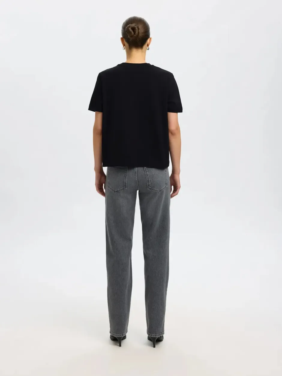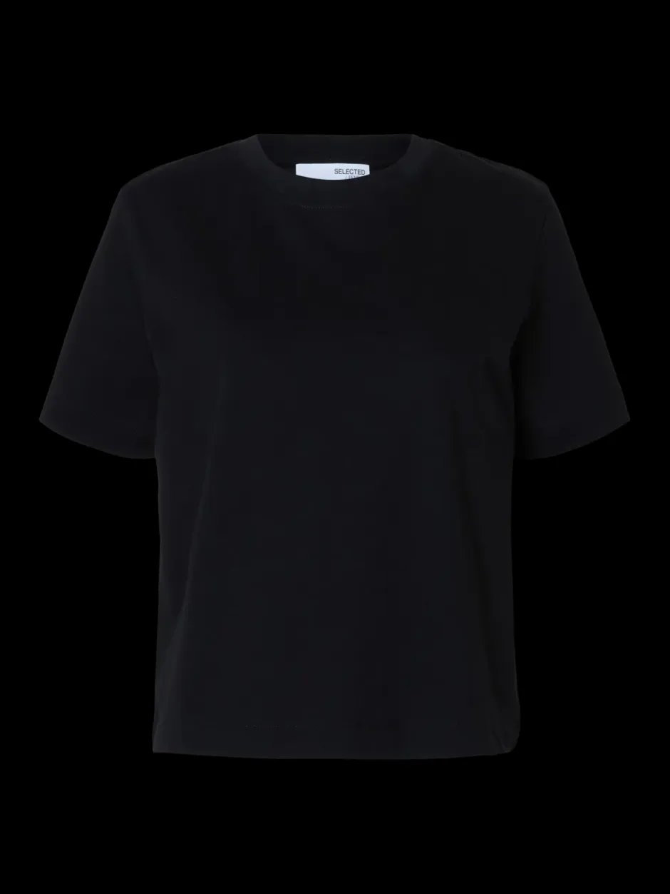 Laatikkomaiseen istuvuuteen leikattu naisten simppeli t-paita. Valmistettu hyvin hengittävästä ja pehmeästä puuvillasta. Sopii hyvin yhteen melkein minkä tahansa kanssa, mutta suosittelemme tyylikkäämpää ilmettä yhdistämällä se tummansinisiin farkkuihin, lenkkareihin ja bleiseriin. – Ribattu pyöreä kaula-aukko – Alaslasketut olkapäät – Lyhyet hihat – Laatikkomainen istuvuus