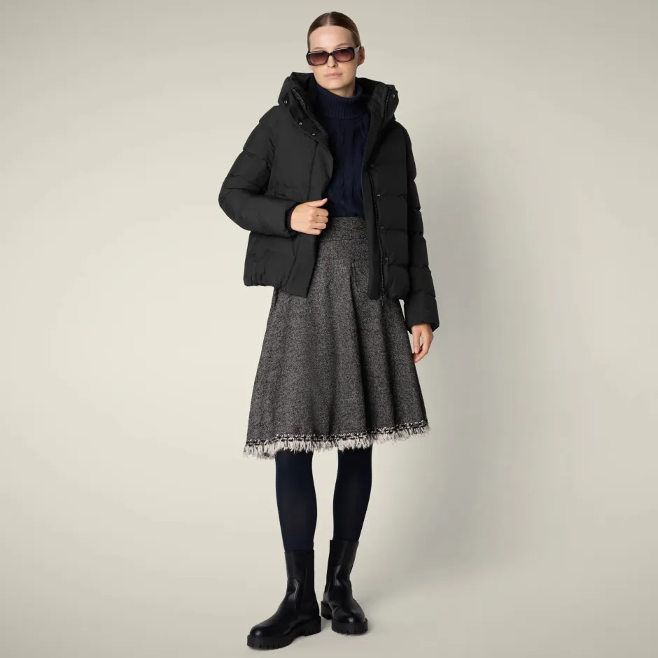 Arena-mallin naisten parkatakki erottuu edukseen lyhyellä, naisellisella leikkauksellaan ja pehmeällä kankaallaan, joka tarjoaa luotettavaa suojaa tuulelta ja sateelta. Eläinvapaalla kierrätetyllä Plumtech®-kankaalla eristetty ja lämpösaumatuilla kanavilla tikattu takki on varustettu joustavalla helmalla ja säädettävällä hupulla – ihanteellinen kylmiin päiviin kaupungissa tai ulkona. Kaksisuuntainen vetoketju ja painonappikiinnitys täydentävät muotoilun käytännöllisellä yksityiskohdalla.