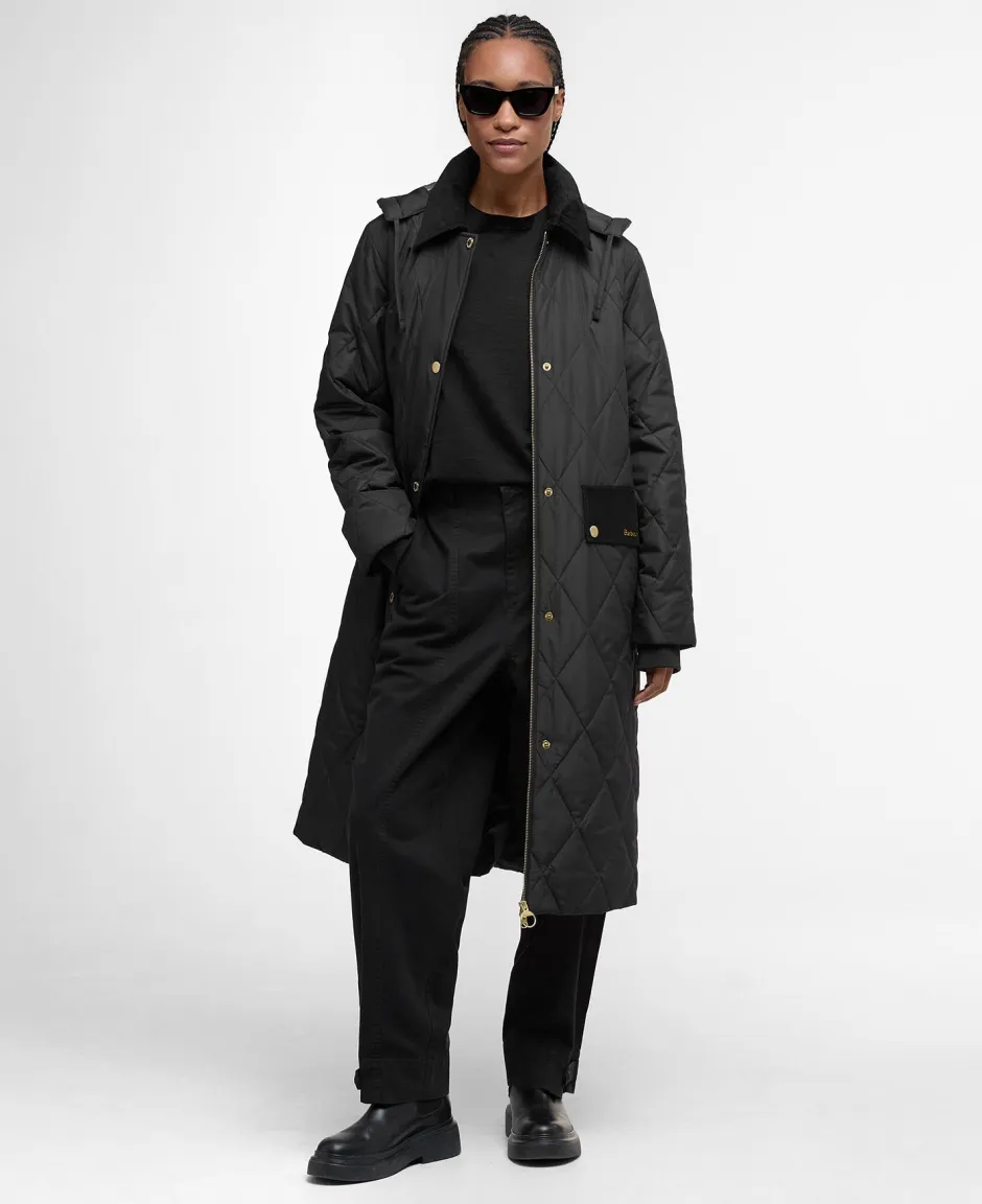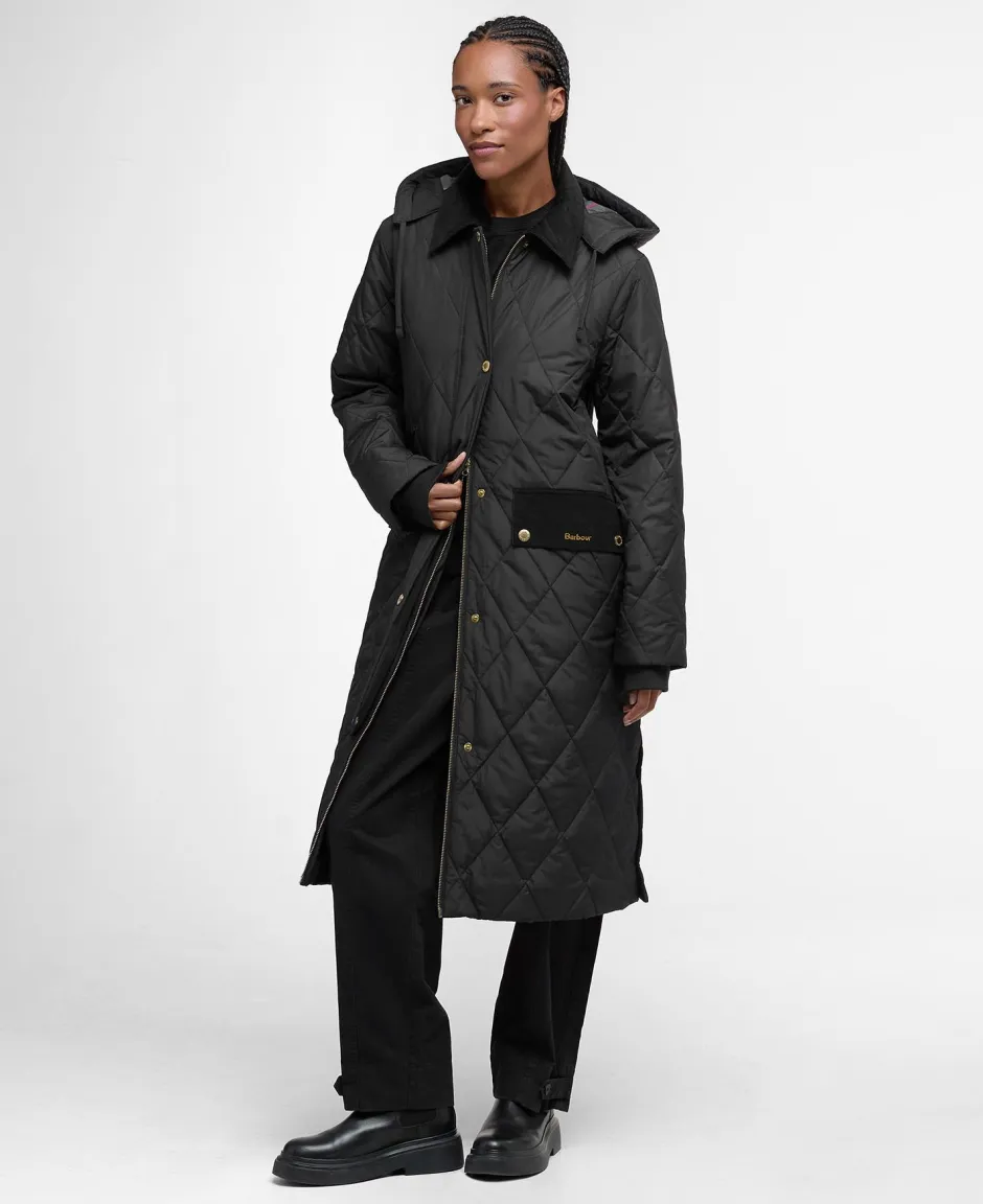 Tyylikäs ja käytännöllinen Barbour Meredith Quilted Jacket on pitkä tikattu takki, joka sopii loistavasti viileämpään säähän. Musta väritys tekee siitä helposti yhdisteltävän osan monenlaista pukeutumista. Regular‑fitleikkaus tarjoaa hyvän liikkumavaran, ja laadukas materiaali sekä viimeistely takaavat luotettavan vaihtoehdon niin kaupungissa kuin maaseudulla.