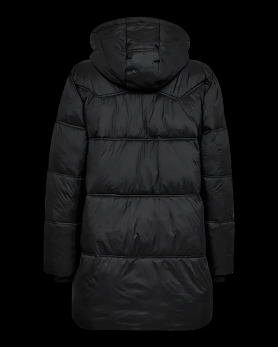Freequentin pehmeä ja tyylikäs toppatakki pitkillä resorillisilla hihoilla, sivutaskuilla, kiristysnauhallisella hupulla ja rennolla istuvuudella.