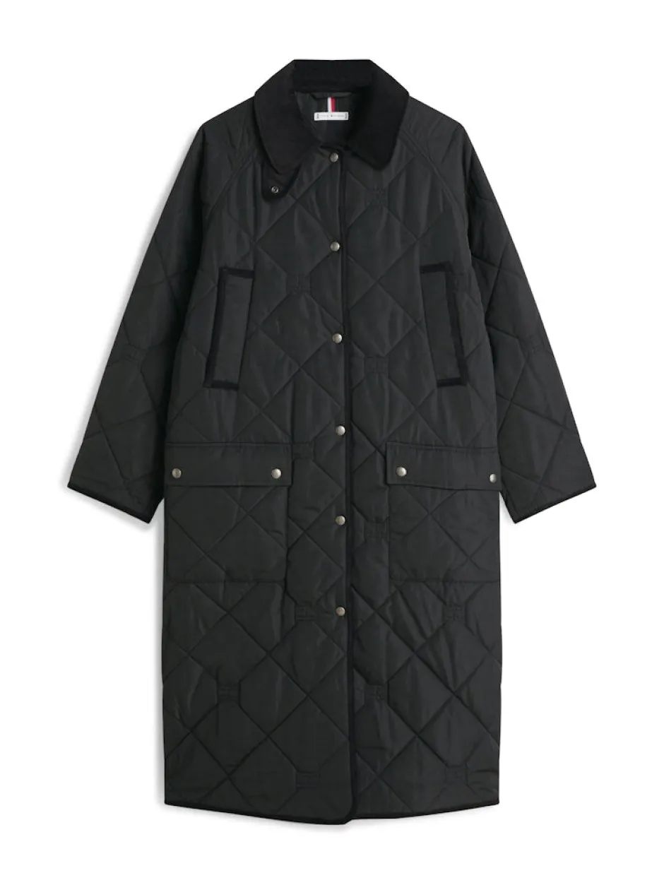 Tämä Tommy Hilfiger tikkitakki on käytännöllinen sekä tyylikäs. Oversized-leikkaus tarjoaa rentoa huolella suunniteltua siluettia, joka suojaa kylmiltä tuulilta ja lisää kerrospukeutumismahdollisuuksia.