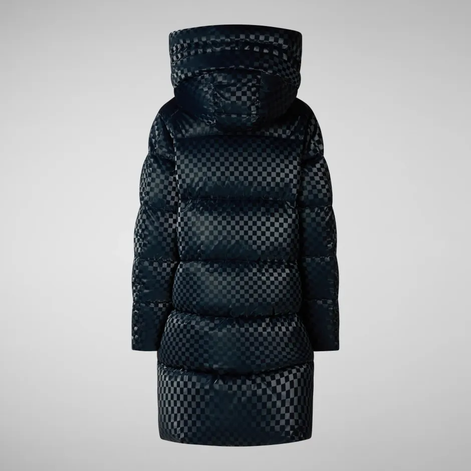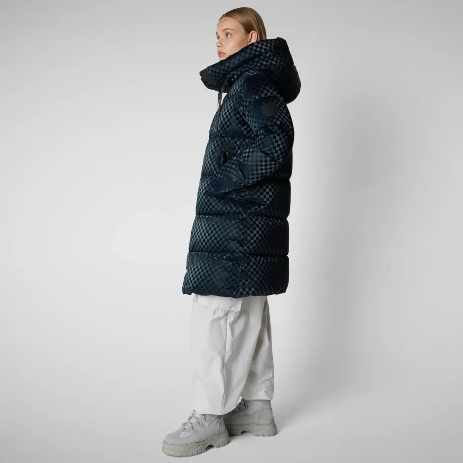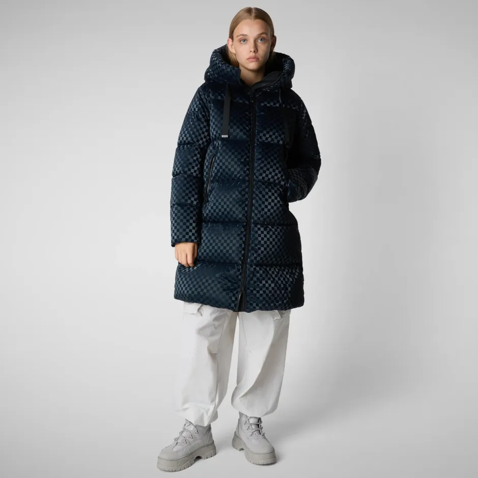 Tämä takki on talven katseenvangitsija, joka on valmistettu kierrätetystä polyesterikankaasta ja siinä on tyylikäs ruutukuviointi. A-linjainen sekä pehmeästi topattu. Takissa on kiristettävä huppu, kaksi vetoketjullista taskua ja kaksisuuntainen vetoketju.