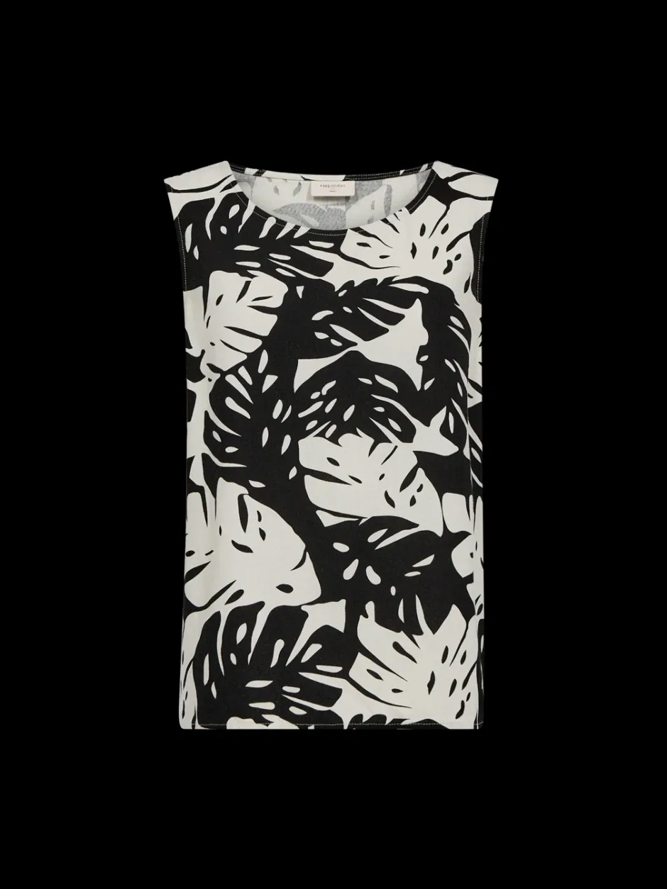 Freequent-toppi kevyestä materiaalista, jossa on kukkakuvio. Lisäksi toppi on pyöreä pääntie, nappikiinnitys takana sekä elegantti, rento istuvuus.
