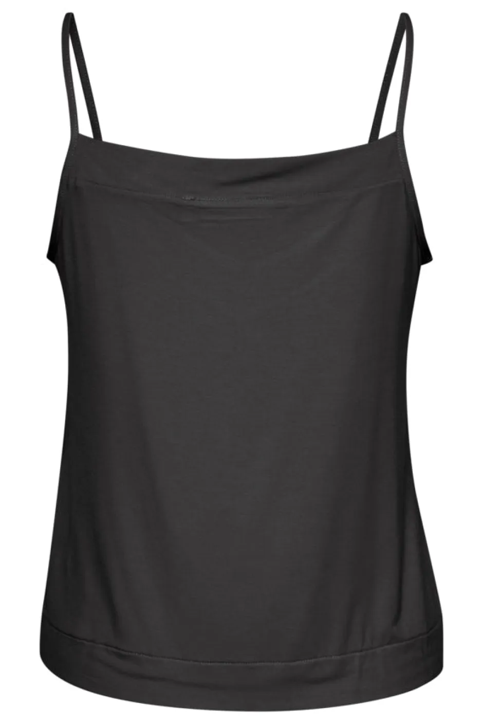 Narutoppi jossa on suora ja hieman löysä istuvuus, hillitty v-pääntie ja ohuet säädettävät olkaimet. Sileä ja pehmeä viimeistely takaa puhtaan ja minimalistisen tyylin. Näkyvien yksityiskohtien puuttuminen luo ajattoman ja monipuolisen siluetin.