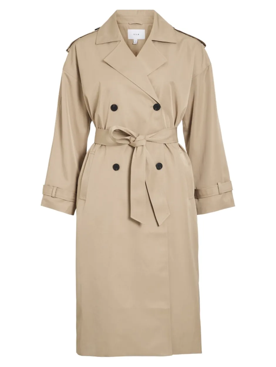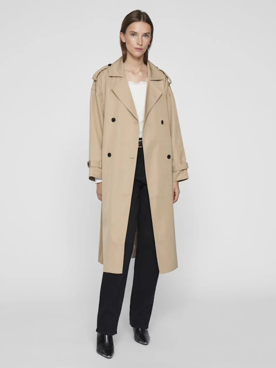• Pitkä trenssi • Kaksirivinen • Vyötäröltä sidottava, irrotettava kangasvyö • Vyödetalji hihoissa ja hartioilla • Halkiodetalji • Kaksi taskua • Regular fit • Pituus: 115 cm koossa 38 • Hihan pituus: 62 cm koossa 38.