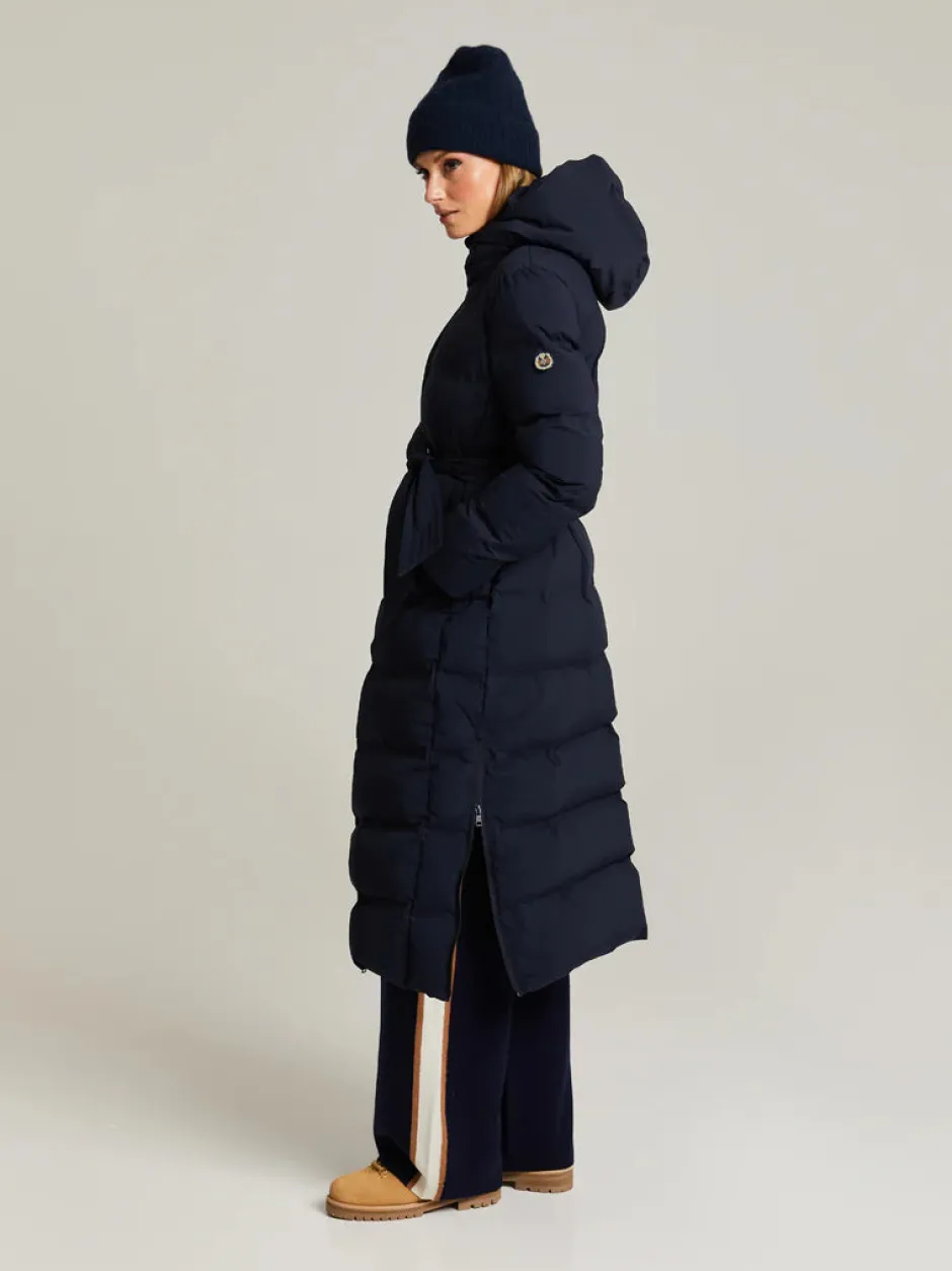 Tyylikäs ja lämmin Andiata Halen -untuvatakki on täydellinen valinta kylmiin talvipäiviin. Pitkä, suoralinjainen klassinen malli, jota täydentävät irrotettava vyö ja käytännölliset sivuvetoketjut liikkuvuuden lisäämiseksi.