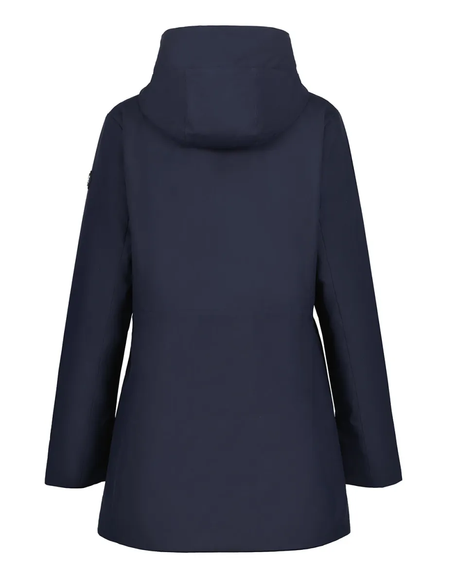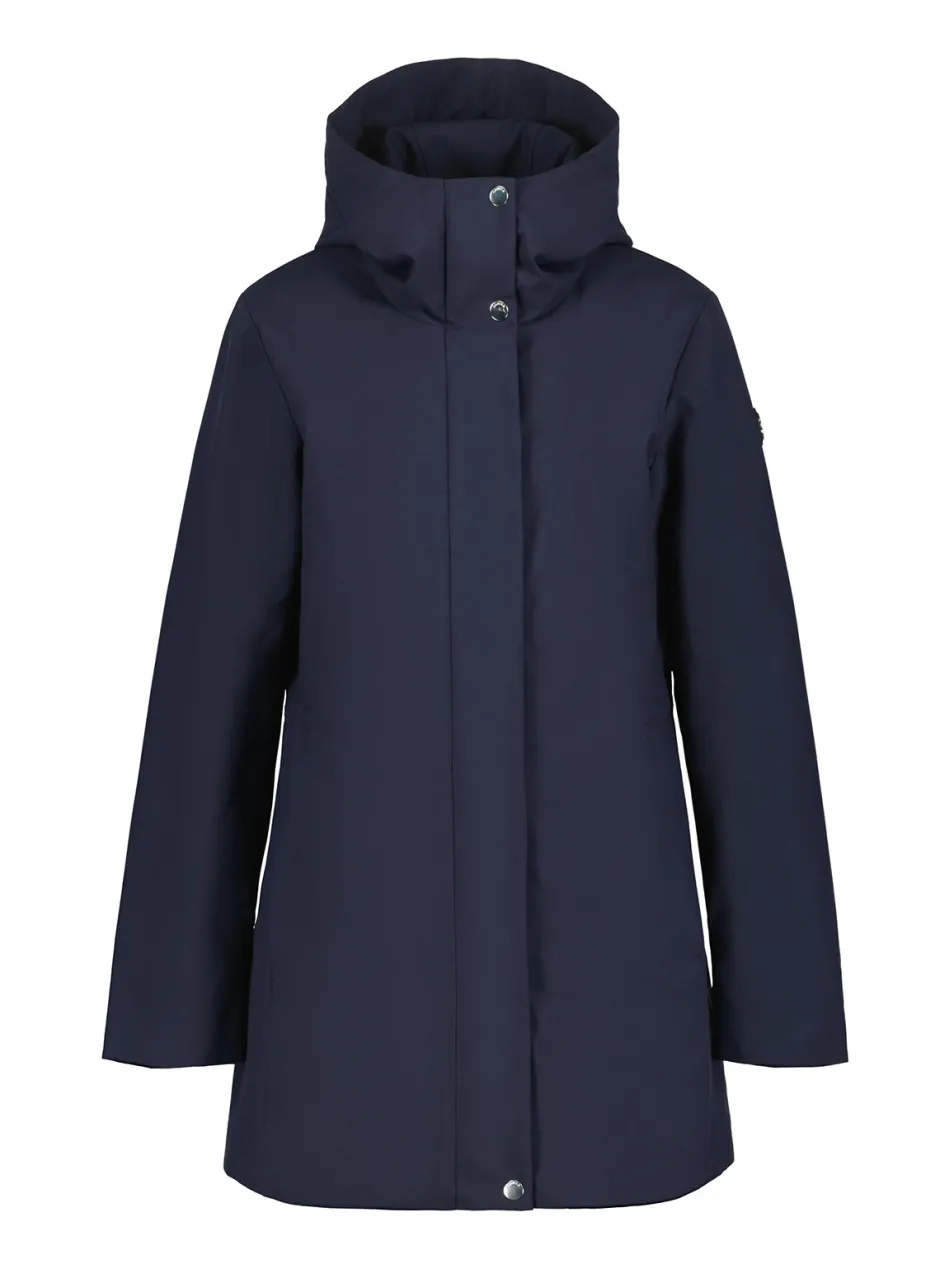Luhta toppatakki, jossa on säädettävä kiinteä huppu, kaksi vetoketjullista etutaskua, vetoketjullinen sisätasku, kaksisuuntainen vetoketju edessä ja säädettävä vyötärö. Takki sopii sekä aktiiviseen että rentoon liikkumiseen.