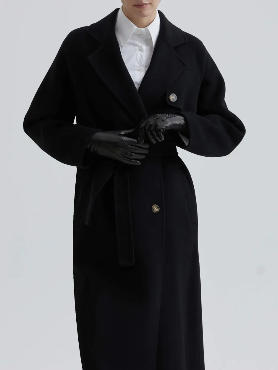 Tyylikäs naisten villakangastakki, käännekaulus ja napitus. Käytännöllisyyttä lisäämään isot sivutaskut. Yksivärinen klassinen design, mukana vyö korostaen vyötäröä. Huolitellut yksityiskohdat nappilistassa ja koristenapeissa.