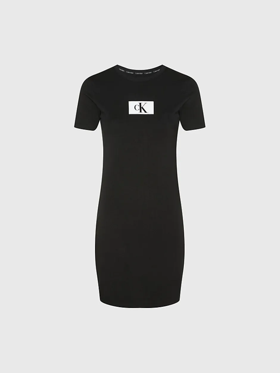 Naisten puuvillainen tyköistuva trikoomekko. Edessä Calvin Klein logoprintti.