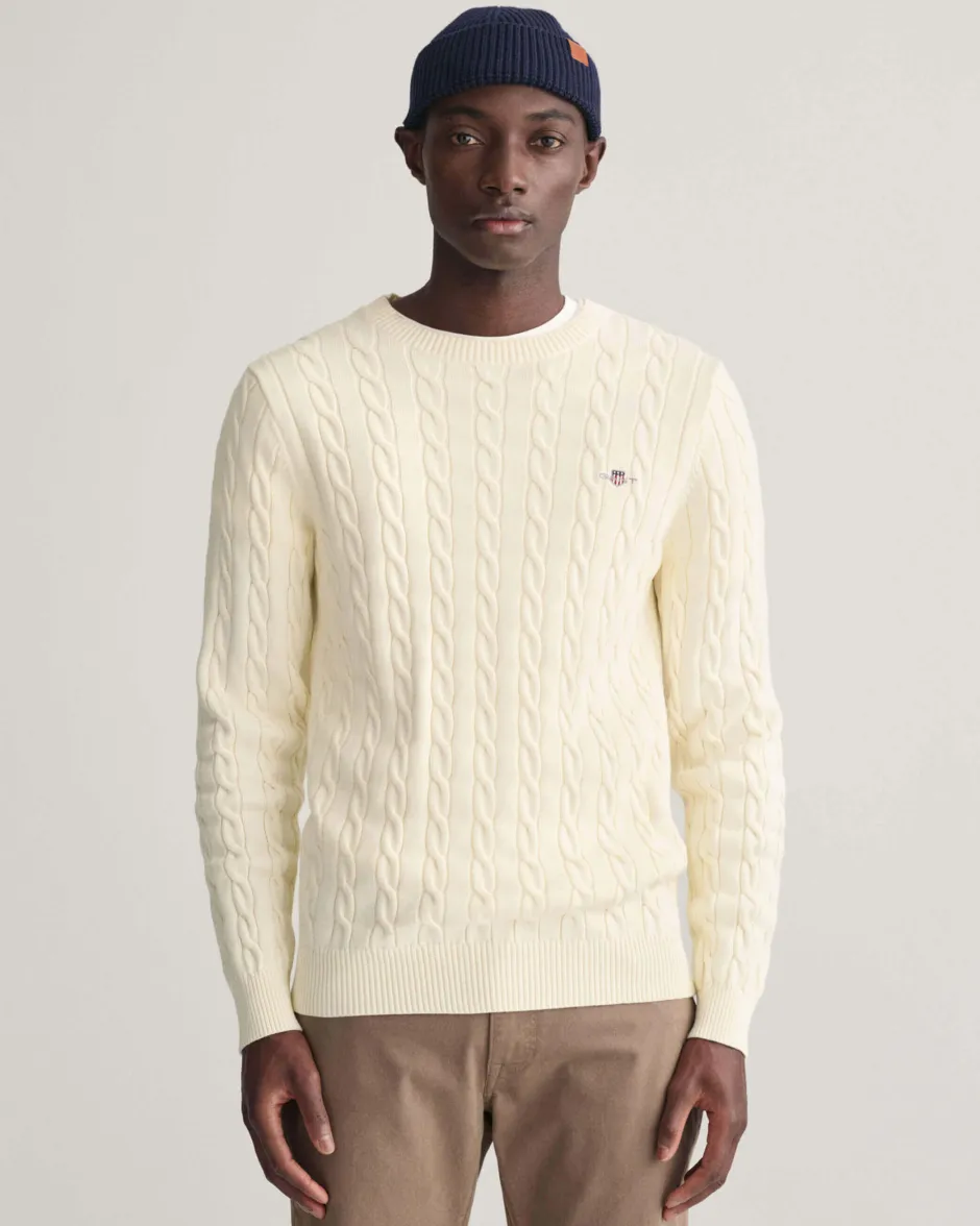 Regular fit -mitoitus Pyöreä pääntie Rinnassa kirjailtu GANT-kuvio Malli on 183 cm pitkä ja käyttää kokoa M